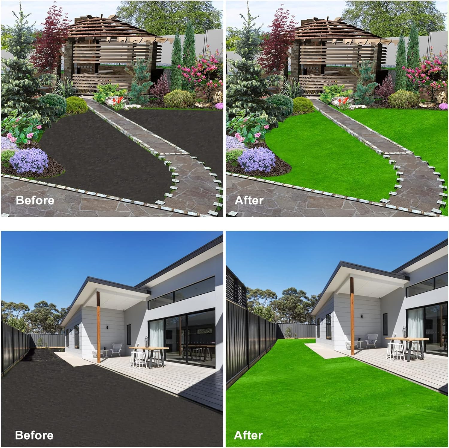 - ALL SEASON USAGE: Artificial grass carpet can be use year-round without any effect of rain or show. Suitable for high temperature, rain and snow weather, non-flammable and heavy usage.